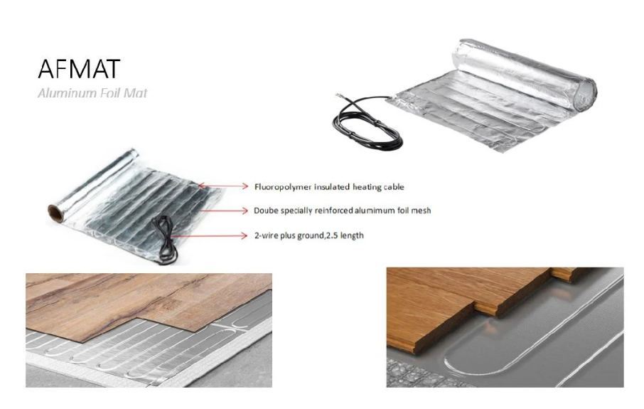 Električno podno grijanje sa jednostavnom montažom za laminat, parket i druge plutajuće obloge. Ne podiže nivo poda. Postavljanje ne zahtijeva posebnu stručnost ili alate. Aluminijumska grijna folija je tvornički pripremljena/spremna za postavljanje, samo je treba spojiti na termostat. Idealno za grijanje malih i velikih prostora, a sa termostatskim upravljanjem pogodno je za gotovo bilo koju vrstu plivajuće podne obloge.