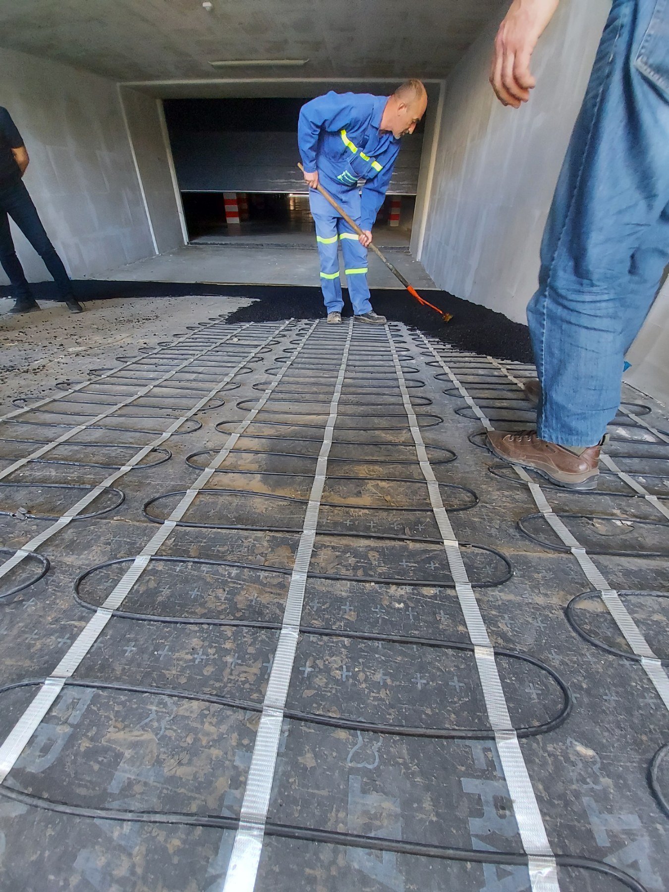 Električni sistem grijanja za vanjske površine (asfalt, beton, kocka) konfigurisan za pokrivanje oko 6 m². Dvožilni grijaći kablovi 30 W/m sa 5 m hladnog priključnog kabla, napajanje 230 V. Sprječava taloženje snijega i stvaranje leda te omogućava sigurno korištenje površina zimi. Upravljanje poluautomatsko (ručno s vremenikom) ili automatsko (automatika + osjetnici).